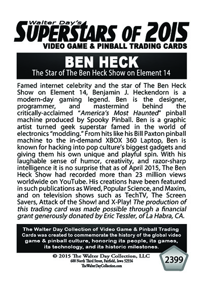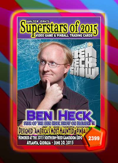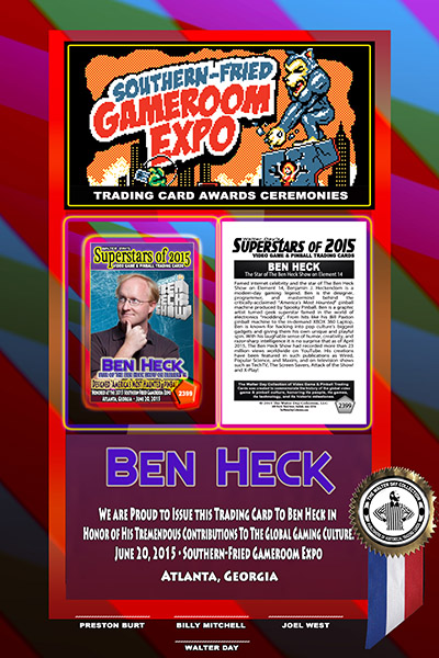 Card sponsored by Eric Tessler, of La Habra, California. Card created for 2015 Southern Fried Gameroom Expo but issued at the 2015 Pinball Expo, October 17, 2015.