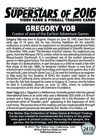 This card was sponsored by Eric Tessler, of La Habra, California. Artwork contributed by Sean "Taggsta" Tagg, of Melbourne, Australia.