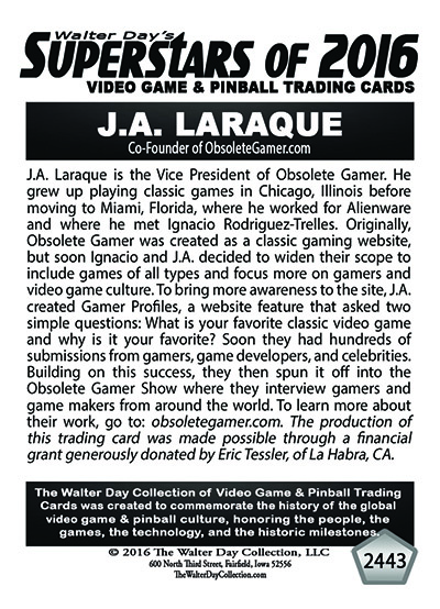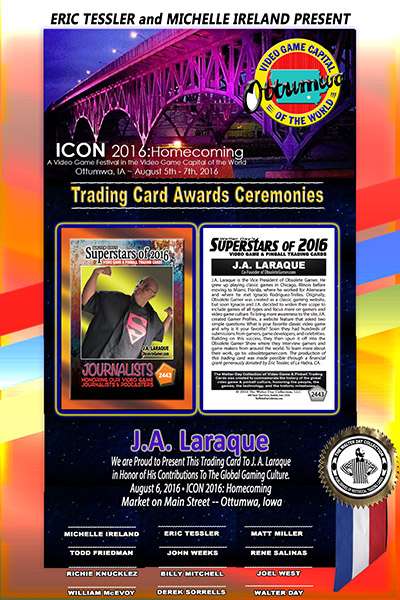 This card and award were presented to J. A. Laraque in recognition of his historic work on the ObsoleteGamer.com Podcast.