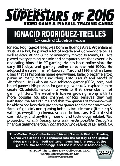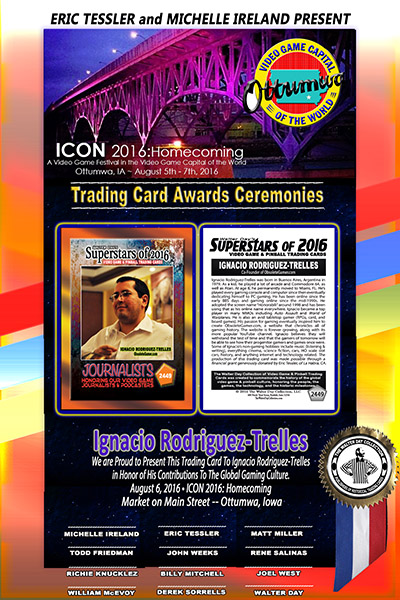 This card and award were presented to Ignacio Rodriguez-Trelles in recognition of his historic work on the ObsoleteGamer.com Podcast..
