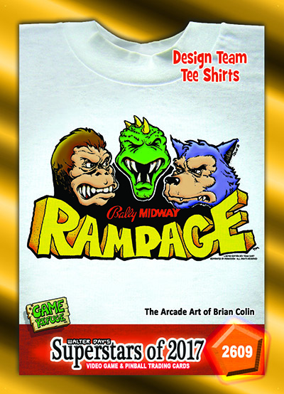 Other Notes: Rampage is an arcade game from the 1980s that was artistically designed by the celebrated game designer, Brian Colin. Brian Colin has made his art available for use in the card set, creating a unique series of eight cards that commemorate this era of game design. The cards include: Pigskin, Blasted, Arch Rivals, Xenophobe, General Chaos, Rampage, Rampage World Tour, and Zwackery. For more information on Brian Colin's arcade legacy, go to: Brian F Colin, CEO, GAME REFUGE INC.