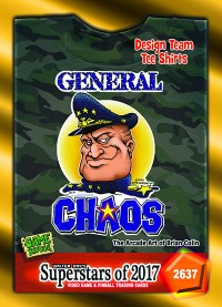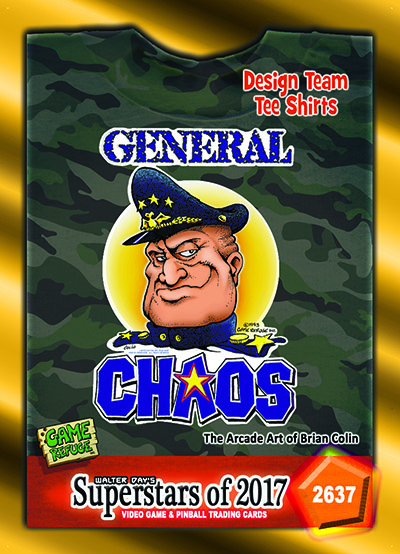 Other Notes: General Chaos is an arcade game from the 1980s that was artistically designed by the celebrated game designer, Brian Colin. Brian Colin has made his art available for use in the card set, creating a unique series of eight cards that commemorate this era of game design. The cards include: Pigskin, Blasted, Arch Rivals, Xenophobe, General Chaos, Rampage, Rampage World Tour, and Zwackery. For more information on Brian Colin's arcade legacy, go to: Brian F Colin, CEO, GAME REFUGE INC.