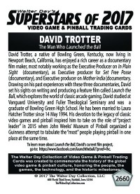 This trading card and award were presented at ARCADE EXPO 2.0 during the Official Walter Day Trading Card Museum Awards Ceremonies, March 18, 2017, at John Week's legendary Museum of PInball, in Banning, California. The 2017 Class of Museum Inductees included Sega's David Rosen, U.S. President George Washington, Alexander Graham Bell, sci-fi author Ray Bradbury, and computer pioneer Alan Turing.