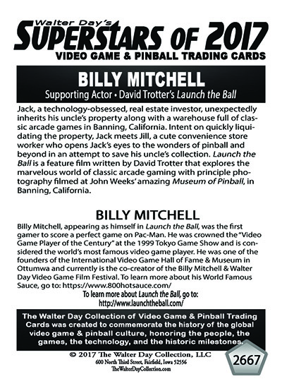 This trading card and award were presented at ARCADE EXPO 2.0 during the Official Walter Day Trading Card Museum Awards Ceremonies, March 15, 2017, at John Week's legendary Museum of PInball, in Banning, California. The 2017 Class of Museum Inductees included Sega's David Rosen, President George Washington, Alexander Graham Bell, sci-fi author Ray Bradbury, and computer pioneer Alan Turing.