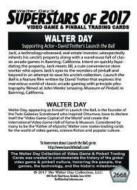This trading card and award were presented at ARCADE EXPO 2.0 during the Official Walter Day Trading Card Museum Awards Ceremonies, March 15, 2017, at John Week's legendary Museum of PInball, in Banning, California. The 2017 Class of Museum Inductees included Sega's David Rosen, President George Washington, Alexander Graham Bell, sci-fi author Ray Bradbury, and computer pioneer Alan Turing.