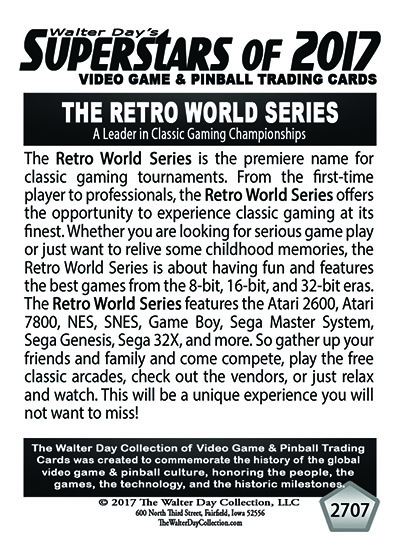 To honor Hal Hawkins (and his Retro World Series) for his important contributions to the gaming culture, this trading card and award were presented at the Classic Game Fest Trading Card Awards Ceremonies, July 29, 2017, in Austin, Texas.