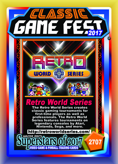 The Retro World Series is the premiere name for classic gaming tournaments. From the first-time player to professionals, the Retro World Series offers the opportunity to experience classic gaming at its finest. Whether you are looking for serious game play or just want to relive some childhood memories, the Retro World Series is about having fun and features the best games from the 8-bit, 16-bit, and 32-bit eras. The Retro World Series features the Atari 2600, Atari 7800, NES, SNES, Game Boy, Sega Master System, Sega Genesis, Sega 32X, and more. So gather up your friends and family and come compete, play the free classic arcades, check out the vendors, or just relax and watch. This will be a unique experience you will not want to miss!