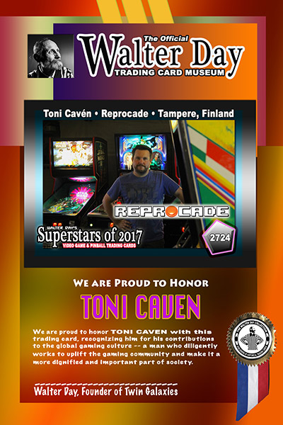 This card and award were presented to Toni Caven during Worldcon75 in Helsinki, Finland, August 11, 2017.
