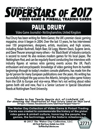 Paul Drury has been writing for Retro Gamer, the UK's premier classic gaming magazine, since it began in 2004. Over the last 13 years, he has interviewed over 150 programmers, designers, artists, musicians, and high scorers, including Nolan Bushnell, Ralph Baer, Ed Logg, Warren Davis, Eugene Jarvis, and Dave Theurer amongst many others – his 'Black Book' of industry contacts is second to none! He also reviews modern games for his local paper, The Nottingham Post, and can be regularly found conducting live interviews with industry figures at various retro gaming events across the UK. Paul’s enthusiasm and encyclopaedic knowledge of video gaming from its humble beginnings through to today’s modern console platforms, has made him the ‘go-to’ person for many European publications over the years. His writing has successfully bridged the gap across the Atlantic, bringing video game history from the USA to Europe and vice-versa. When he's not writing about video games both old and new, Paul is a Senior Lecturer in Special Educational Needs at Nottingham Trent University.