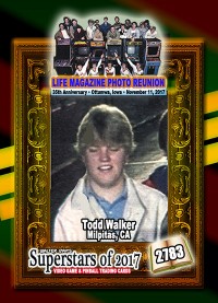 During the recent Ottumwa Trading Card Ceremonies, Todd Walker was among an elite group of video game luminaries who were honored on trading cards for their historic participation in the 1982 LIFE Magazine photoshoot. Returning to Ottumwa for the 35th-year reunion of the photo, they were honored with trading cards that were presented by Billy Mitchell and Walter Day along with the AWARD CERTIFICATE shown herein. They were presented on Saturday, November 11, 2017, during the Ottumwa Old School Arcade Galaxies of Gaming Festival, at the Quincy Place Mall, in Ottumwa, Iowa. To see the other trading cards unveiled during this ceremony -- or to see the long chronological history of the TRADING CARDS AWARDS TRADITION, go to this link: Chronological History of the Trading Card Awards Ceremonies
