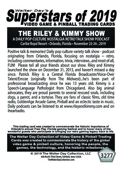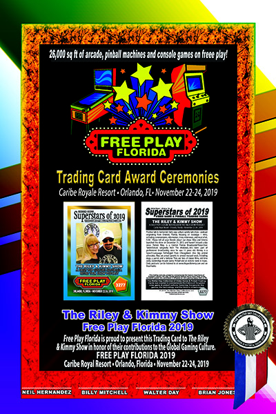 This trading card and trading card award were presented on Saturday, November 23, 2019 during the 2019 FREE PLAY FLORIDA gaming festival, at the Caribe Royale Resort, in Orlando, Florida.