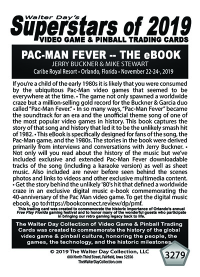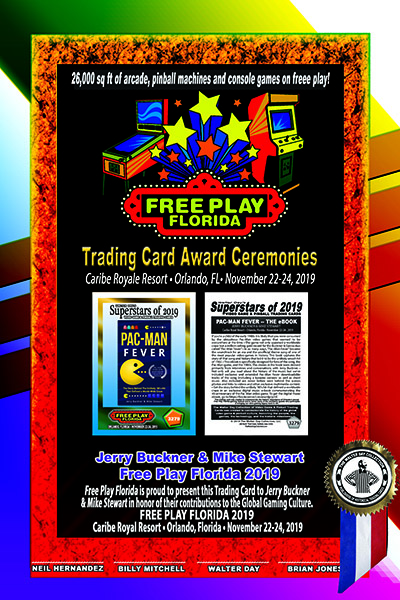 This trading card and trading card award were presented on Saturday, November 23, 2019 during the 2019 FREE PLAY FLORIDA gaming festival, at the Caribe Royale Resort, in Orlando, Florida.