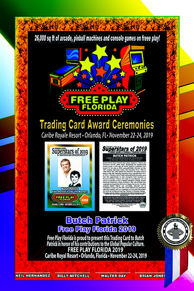 This trading card and trading card award were presented on Saturday, November 23, 2019 during the 2019 FREE PLAY FLORIDA gaming festival, at the Caribe Royale Resort, in Orlando, Florida.