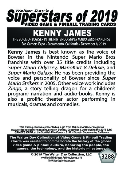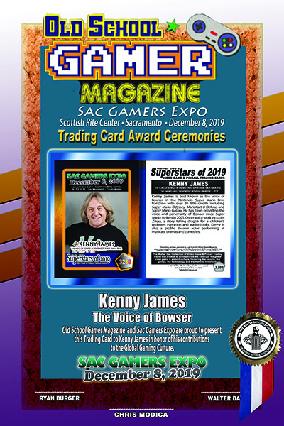 This trading card and trading card award were presented by Chris Modica on Sunday, December 8, 2019 to this deserving recipient who is recognized as an important contributor to the global video game culture. The card and award were created as a gift from OLD SCHOOL GAMER MAGAZINE (OldSchoolGamer.com) and presented during the 2019 SAC GAMERS EXPO, at the Scottish Rite Center in Sacramento, California.