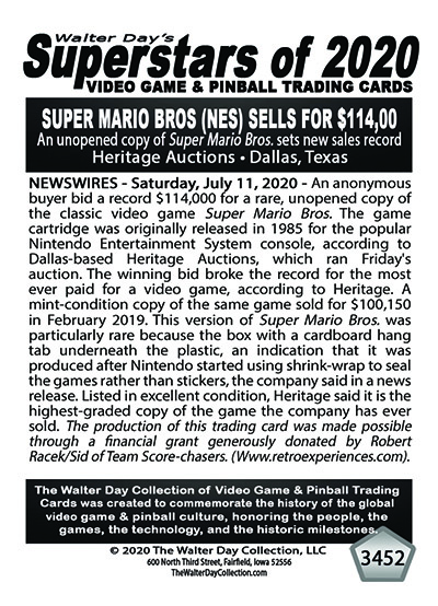 3452 - Unopened Super Mario Nes Cartridge sells for $114.000