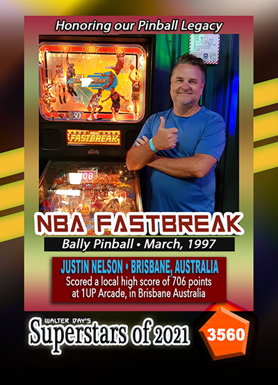 A subset of the Superstars of 2021, Our Pinball Legacy series of trading cards celebrates the 90th anniversary of the birth of coin-operated pinball (1931-2021). To honor this tremendous legacy, we invited more than 400 pinball aficianados to pose with their favorite pinball game for a trading card. And, on the back of the card, they wrote a 150-200 word biography, telling the story of their love for pinball while including in the text historical facts about the machine.