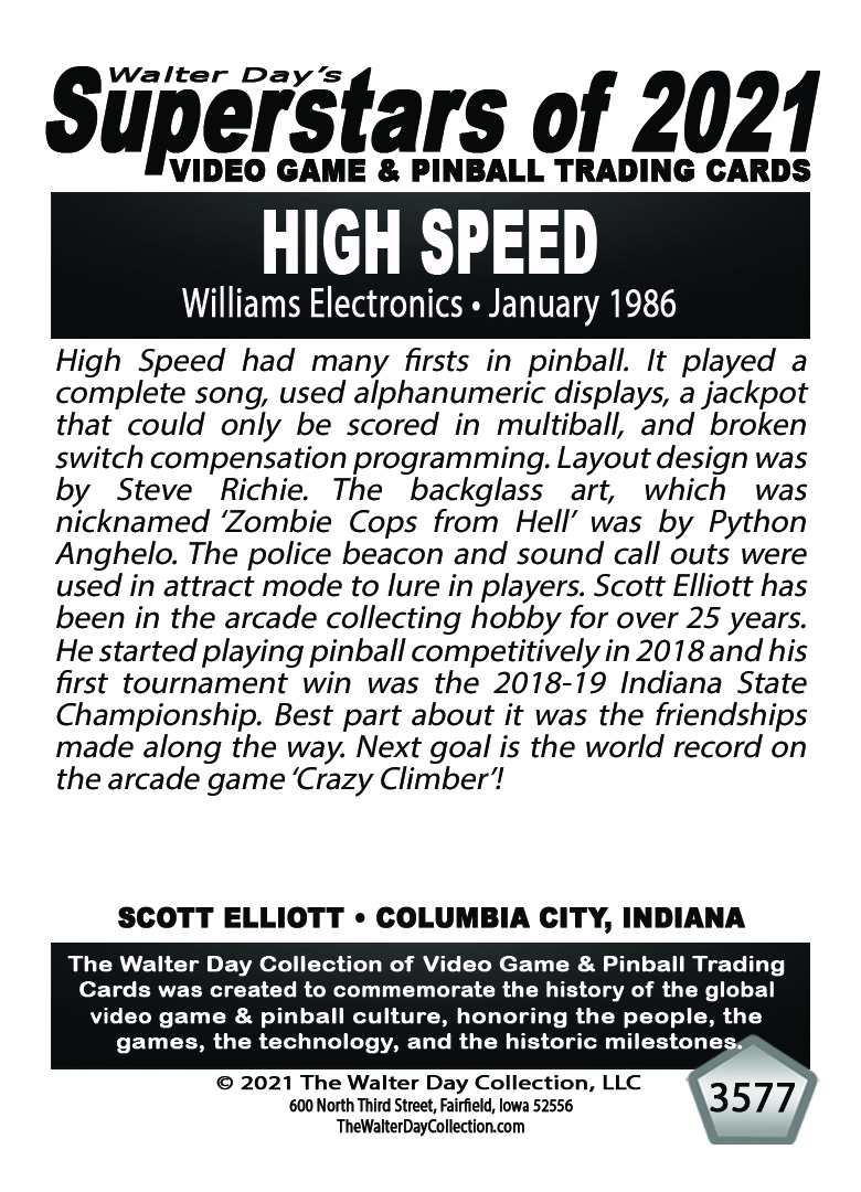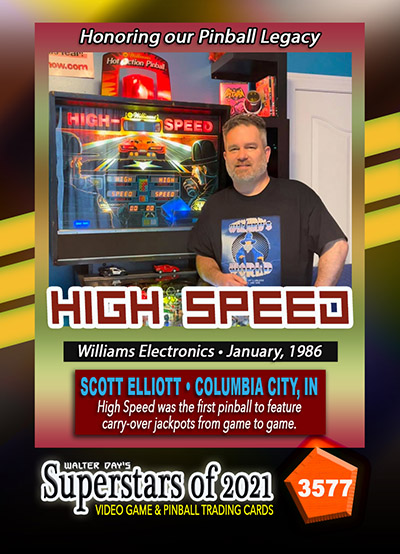 A subset of the Superstars of 2021, Our Pinball Legacy series of trading cards celebrates the 90th anniversary of the birth of coin-operated pinball (1931-2021). To honor this tremendous legacy, we invited more than 400 pinball aficianados to pose with their favorite pinball game for a trading card. And, on the back of the card, they wrote a 150-200 word biography, telling the story of their love for pinball while including in the text historical facts about the machine.