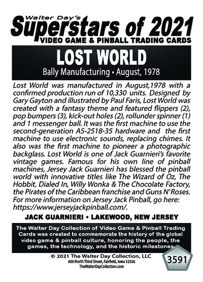 A subset of the Superstars of 2021, Our Pinball Legacy series of trading cards celebrates the 90th anniversary of the birth of coin-operated pinball (1931-2021). To honor this tremendous legacy, we invited more than 400 pinball aficianados to pose with their favorite pinball game for a trading card. And, on the back of the card, they wrote a 150-200 word biography, telling the story of their love for pinball while including in the text historical facts about the machine.