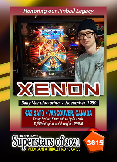 A subset of the Superstars of 2021, Our Pinball Legacy series of trading cards celebrates the 90th anniversary of the birth of coin-operated pinball (1931-2021). To honor this tremendous legacy, we invited more than 400 pinball aficianados to pose with their favorite pinball game for a trading card. And, on the back of the card, they wrote a 150-200 word biography, telling the story of their love for pinball while including in the text historical facts about the machine.