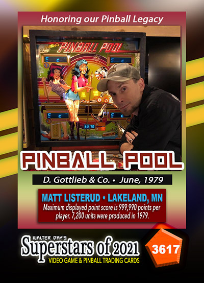 A subset of the Superstars of 2021, Our Pinball Legacy series of trading cards celebrates the 90th anniversary of the birth of coin-operated pinball (1931-2021). To honor this tremendous legacy, we invited more than 400 pinball aficianados to pose with their favorite pinball game for a trading card. And, on the back of the card, they wrote a 150-200 word biography, telling the story of their love for pinball while including in the text historical facts about the machine.
