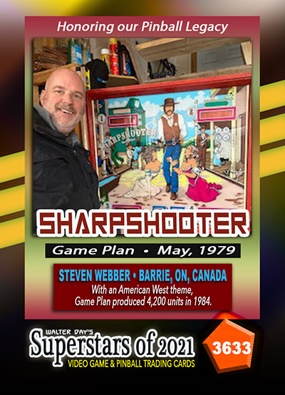 A subset of the Superstars of 2021, Our Pinball Legacy series of trading cards celebrates the 90th anniversary of the birth of coin-operated pinball (1931-2021). To honor this tremendous legacy, we invited more than 400 pinball aficianados to pose with their favorite pinball game for a trading card. And, on the back of the card, they wrote a 150-200 word biography, telling the story of their love for pinball while including in the text historical facts about the machine.