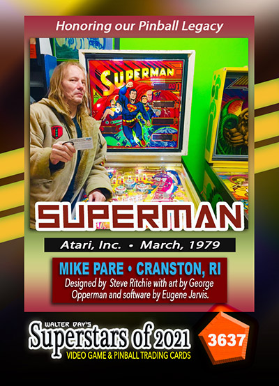 A subset of the Superstars of 2021, Our Pinball Legacy series of trading cards celebrates the 90th anniversary of the birth of coin-operated pinball (1931-2021). To honor this tremendous legacy, we invited more than 400 pinball aficianados to pose with their favorite pinball game for a trading card. And, on the back of the card, they wrote a 150-200 word biography, telling the story of their love for pinball while including in the text historical facts about the machine.