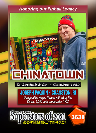 A subset of the Superstars of 2021, Our Pinball Legacy series of trading cards celebrates the 90th anniversary of the birth of coin-operated pinball (1931-2021). To honor this tremendous legacy, we invited more than 400 pinball aficianados to pose with their favorite pinball game for a trading card. And, on the back of the card, they wrote a 150-200 word biography, telling the story of their love for pinball while including in the text historical facts about the machine.
