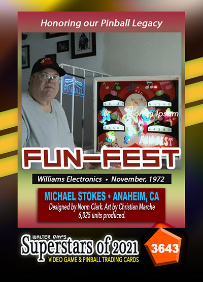 A subset of the Superstars of 2021, Our Pinball Legacy series of trading cards celebrates the 90th anniversary of the birth of coin-operated pinball (1931-2021). To honor this tremendous legacy, we invited more than 400 pinball aficianados to pose with their favorite pinball game for a trading card. And, on the back of the card, they wrote a 150-200 word biography, telling the story of their love for pinball while including in the text historical facts about the machine.