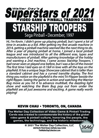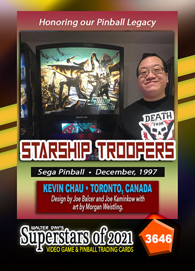 A subset of the Superstars of 2021, Our Pinball Legacy series of trading cards celebrates the 90th anniversary of the birth of coin-operated pinball (1931-2021). To honor this tremendous legacy, we invited more than 400 pinball aficianados to pose with their favorite pinball game for a trading card. And, on the back of the card, they wrote a 150-200 word biography, telling the story of their love for pinball while including in the text historical facts about the machine.