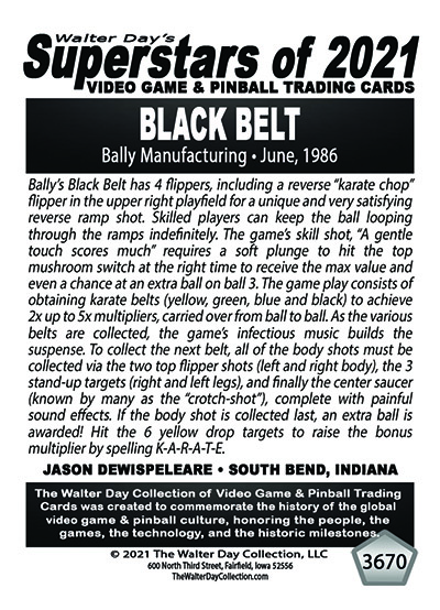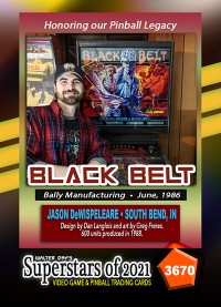 A subset of the Superstars of 2021, Our Pinball Legacy series of trading cards celebrates the 90th anniversary of the birth of coin-operated pinball (1931-2021). To honor this tremendous legacy, we invited more than 400 pinball aficianados to pose with their favorite pinball game for a trading card. And, on the back of the card, they wrote a 150-200 word biography, telling the story of their love for pinball while including in the text historical facts about the machine.
