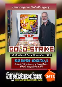 A subset of the Superstars of 2021, Our Pinball Legacy series of trading cards celebrates the 90th anniversary of the birth of coin-operated pinball (1931-2021). To honor this tremendous legacy, we invited more than 400 pinball aficianados to pose with their favorite pinball game for a trading card. And, on the back of the card, they wrote a 150-200 word biography, telling the story of their love for pinball while including in the text historical facts about the machine.
