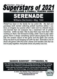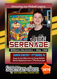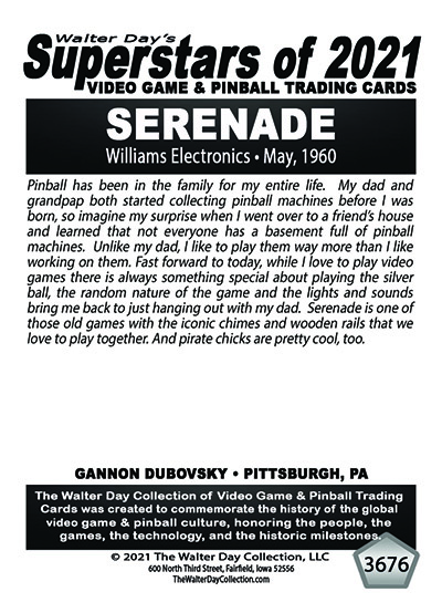A subset of the Superstars of 2021, Our Pinball Legacy series of trading cards celebrates the 90th anniversary of the birth of coin-operated pinball (1931-2021). To honor this tremendous legacy, we invited more than 400 pinball aficianados to pose with their favorite pinball game for a trading card. And, on the back of the card, they wrote a 150-200 word biography, telling the story of their love for pinball while including in the text historical facts about the machine.