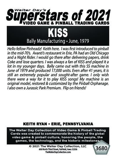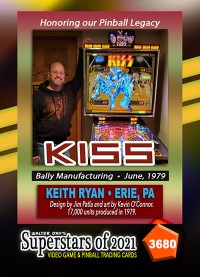 A subset of the Superstars of 2021, Our Pinball Legacy series of trading cards celebrates the 90th anniversary of the birth of coin-operated pinball (1931-2021). To honor this tremendous legacy, we invited more than 400 pinball aficianados to pose with their favorite pinball game for a trading card. And, on the back of the card, they wrote a 150-200 word biography, telling the story of their love for pinball while including in the text historical facts about the machine.