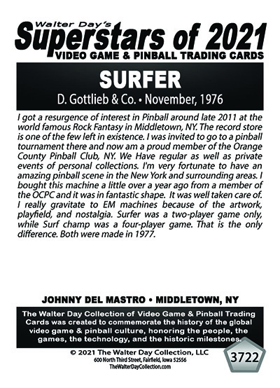 A subset of the Superstars of 2021, Our Pinball Legacy series of trading cards celebrates the 90th anniversary of the birth of coin-operated pinball (1931-2021). To honor this tremendous legacy, we invited more than 400 pinball aficianados to pose with their favorite pinball game for a trading card. And, on the back of the card, they wrote a 150-200 word biography, telling the story of their love for pinball while including in the text historical facts about the machine.