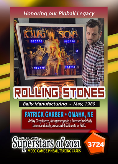 A subset of the Superstars of 2021, Our Pinball Legacy series of trading cards celebrates the 90th anniversary of the birth of coin-operated pinball (1931-2021). To honor this tremendous legacy, we invited more than 400 pinball aficianados to pose with their favorite pinball game for a trading card. And, on the back of the card, they wrote a 150-200 word biography, telling the story of their love for pinball while including in the text historical facts about the machine.