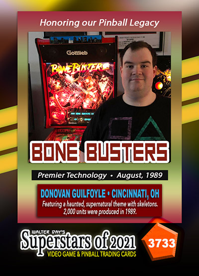 A subset of the Superstars of 2021, Our Pinball Legacy series of trading cards celebrates the 90th anniversary of the birth of coin-operated pinball (1931-2021). To honor this tremendous legacy, we invited more than 400 pinball aficianados to pose with their favorite pinball game for a trading card. And, on the back of the card, they wrote a 150-200 word biography, telling the story of their love for pinball while including in the text historical facts about the machine.