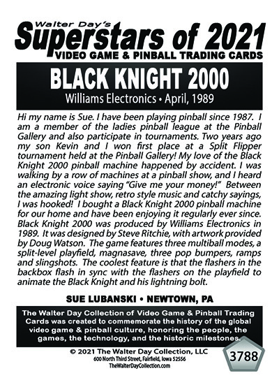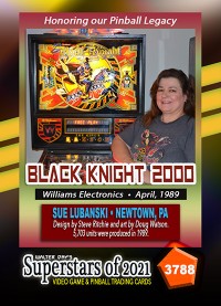 A subset of the Superstars of 2021, Our Pinball Legacy series of trading cards celebrates the 90th anniversary of the birth of coin-operated pinball (1931-2021). To honor this tremendous legacy, we invited more than 400 pinball aficianados to pose with their favorite pinball game for a trading card. And, on the back of the card, they wrote a 150-200 word biography, telling the story of their love for pinball while including in the text historical facts about the machine.