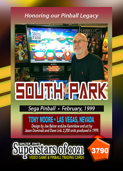 A subset of the Superstars of 2021, Our Pinball Legacy series of trading cards celebrates the 90th anniversary of the birth of coin-operated pinball (1931-2021). To honor this tremendous legacy, we invited more than 400 pinball aficianados to pose with their favorite pinball game for a trading card. And, on the back of the card, they wrote a 150-200 word biography, telling the story of their love for pinball while including in the text historical facts about the machine.