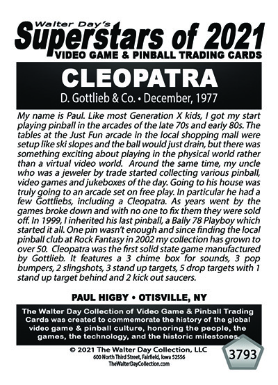 Taking six full months to create, this card series is a personal gift for the pinball community from Walter Day and he will not accept any money for doing this. Individuals interested in obtaining copies of their card can order through Roeland Hekker, c/o Frontline Printing, Fairfield, Iowa Contact:  This email address is being protected from spambots. You need JavaScript enabled to view it.