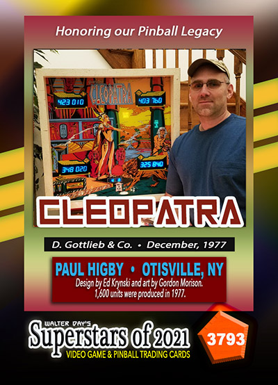 A subset of the Superstars of 2021, Our Pinball Legacy series of trading cards celebrates the 90th anniversary of the birth of coin-operated pinball (1931-2021). To honor this tremendous legacy, we invited more than 400 pinball aficianados to pose with their favorite pinball game for a trading card. And, on the back of the card, they wrote a 150-200 word biography, telling the story of their love for pinball while including in the text historical facts about the machine.