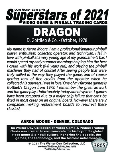 A subset of the Superstars of 2021, Our Pinball Legacy series of trading cards celebrates the 90th anniversary of the birth of coin-operated pinball (1931-2021). To honor this tremendous legacy, we invited more than 400 pinball aficionados to pose with their favorite pinball game for a trading card. And, on the back of the card, they wrote a 150-200 word biography, telling the story of their love for pinball while including in the text historical facts about the machine.