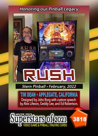 A subset of the Superstars of 2021, Our Pinball Legacy series of trading cards celebrates the 90th anniversary of the birth of coin-operated pinball (1931-2021). To honor this tremendous legacy, we invited more than 400 pinball aficionados to pose with their favorite pinball game for a trading card. And, on the back of the card, they wrote a 150-200 word biography, telling the story of their love for pinball while including in the text historical facts about the machine.