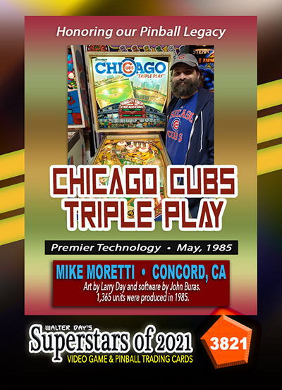 A subset of the Superstars of 2021, Our Pinball Legacy series of trading cards celebrates the 90th anniversary of the birth of coin-operated pinball (1931-2021). To honor this tremendous legacy, we invited more than 400 pinball aficionados to pose with their favorite pinball game for a trading card. And, on the back of the card, they wrote a 150-200 word biography, telling the story of their love for pinball while including in the text historical facts about the machine.