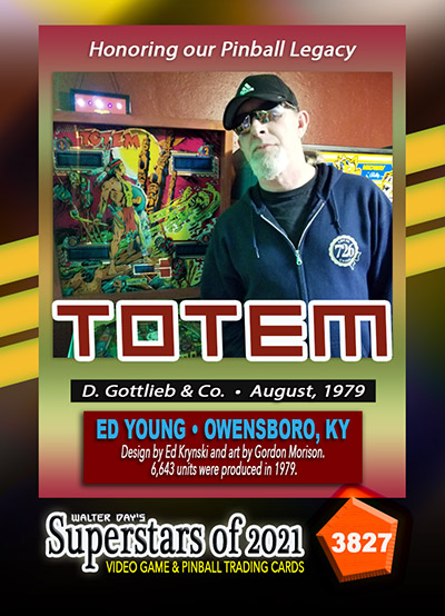 A subset of the Superstars of 2021, Our Pinball Legacy series of trading cards celebrates the 90th anniversary of the birth of coin-operated pinball (1931-2021). To honor this tremendous legacy, we invited more than 400 pinball aficionados to pose with their favorite pinball game for a trading card. And, on the back of the card, they wrote a 150-200 word biography, telling the story of their love for pinball while including in the text historical facts about the machine.