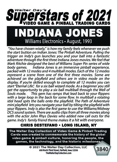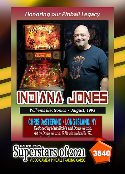 A subset of the Superstars of 2021, Our Pinball Legacy series of trading cards celebrates the 90th anniversary of the birth of coin-operated pinball (1931-2021). To honor this tremendous legacy, we invited more than 400 pinball aficionados to pose with their favorite pinball game for a trading card. And, on the back of the card, they wrote a 150-200 word biography, telling the story of their love for pinball while including in the text historical facts about the machine.