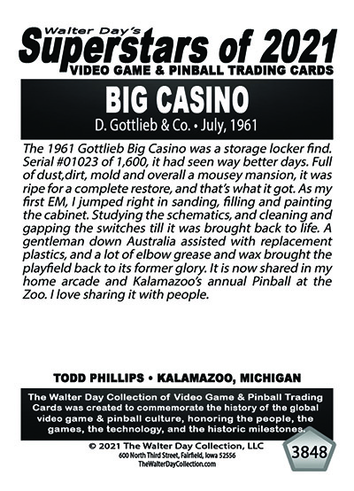 A subset of the Superstars of 2021, Our Pinball Legacy series of trading cards celebrates the 90th anniversary of the birth of coin-operated pinball (1931-2021). To honor this tremendous legacy, we invited more than 400 pinball aficianados to pose with their favorite pinball game for a trading card. And, on the back of the card, they wrote a 150-200 word biography, telling the story of their love for pinball while including in the text historical facts about the machine.
