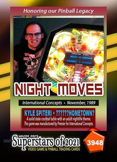 A subset of the Superstars of 2021, Our Pinball Legacy series of trading cards celebrates the 90th anniversary of the birth of coin-operated pinball (1931-2021). To honor this tremendous legacy, we invited more than 400 pinball aficionados to pose with their favorite pinball game for a trading card. And, on the back of the card, they wrote a 150-200 word biography, telling the story of their love for pinball while including in the text historical facts about the machine.