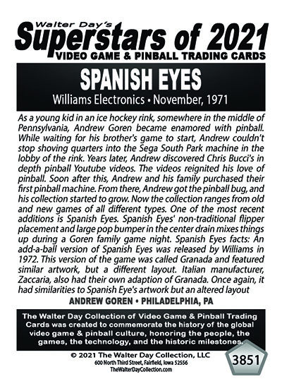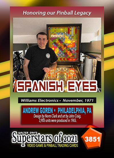 A subset of the Superstars of 2021, Our Pinball Legacy series of trading cards celebrates the 90th anniversary of the birth of coin-operated pinball (1931-2021). To honor this tremendous legacy, we invited more than 400 pinball aficionados to pose with their favorite pinball game for a trading card. And, on the back of the card, they wrote a 150-200 word biography, telling the story of their love for pinball while including in the text historical facts about the machine.