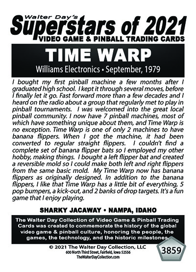 A subset of the Superstars of 2021, Our Pinball Legacy series of trading cards celebrates the 90th anniversary of the birth of coin-operated pinball (1931-2021). To honor this tremendous legacy, we invited more than 400 pinball aficionados to pose with their favorite pinball game for a trading card. And, on the back of the card, they wrote a 150-200 word biography, telling the story of their love for pinball while including in the text historical facts about the machine.