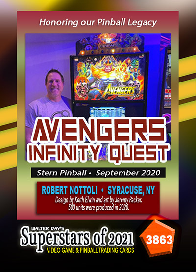 A subset of the Superstars of 2021, Our Pinball Legacy series of trading cards celebrates the 90th anniversary of the birth of coin-operated pinball (1931-2021). To honor this tremendous legacy, we invited more than 400 pinball aficionados to pose with their favorite pinball game for a trading card. And, on the back of the card, they wrote a 150-200 word biography, telling the story of their love for pinball while including in the text historical facts about the machine.
